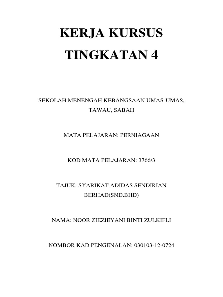 Kerja Kursus Tingkatan 4 Adik Pdf